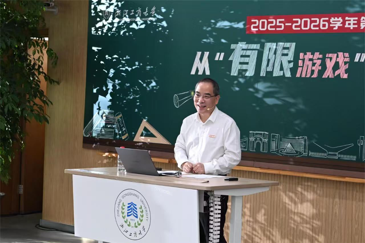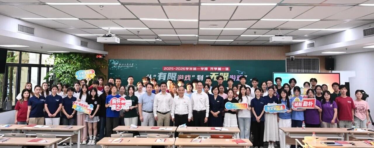 9月26日下午,浙江工商大学党委书记郁建兴以《从“有限游戏”到“无限游戏”》为题,为7935名2025级本硕博新生热情开讲“开学第一课”,师生共答成长课题,解锁未来无限可能。校党委副书记方向明主持开学第一课。